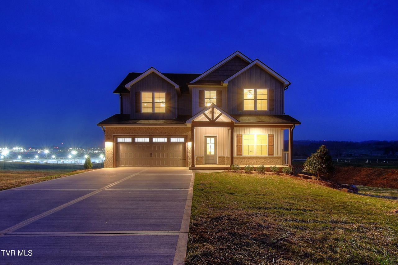 Beautiful family-friendly 4 bedroom, 3 bath home featuring two spacious living areas and an unfinished walk-out basement, all situated on a private 1.75-acre lot in The Glades at Hawley Meadows.Upon entry, you are welcomed by an inviting two-story foyer that opens to a bright and airy open-concept floor plan. The living room is perfect for entertaining with hardwood flooring, a custom natural gas fireplace, and seamless flow into the dining area and kitchen.The chef's kitchen is thoughtfully designed with abundant shaker-style cabinetry featuring soft-close doors and drawers, quartz countertops, tiled backsplash, stainless steel appliances, and a large 6-foot island ideal for gatherings.The main-level primary suite offers a relaxing retreat with tray ceilings, accent wall, dual vanities, custom tile shower, and walk-in closets with custom shelving. An additional bedroom and full bathroom are also located on the main level, providing flexibility for guests or a home office.The second level features a spacious family/den area, perfect for movie nights or play space. Bedrooms three and four are generously sized and include large closets for ample storage.The unfinished walk-out basement provides endless possibilities for future expansion and is already plumbed for a bathroom.Premium upgrades include hardwood and tile flooring throughout, natural gas service for HVAC, tankless water heater, range, and fireplace, along with quality craftsmanship at every turn.Enjoy peaceful views from the covered back deck and the privacy of a sprawling 1.75-acre lot in this exclusive new community, conveniently located in Blountville. This is a rare opportunity to own a luxury new construction home that perfectly blends modern elegance with serene countryside living.This quality home has a 1 year builder's warranty. Taxes to be assessed. All information herein deemed reliable but subject to buyers verification. Estimated completion- March 2026.*Septic is permitted for a 3BR*