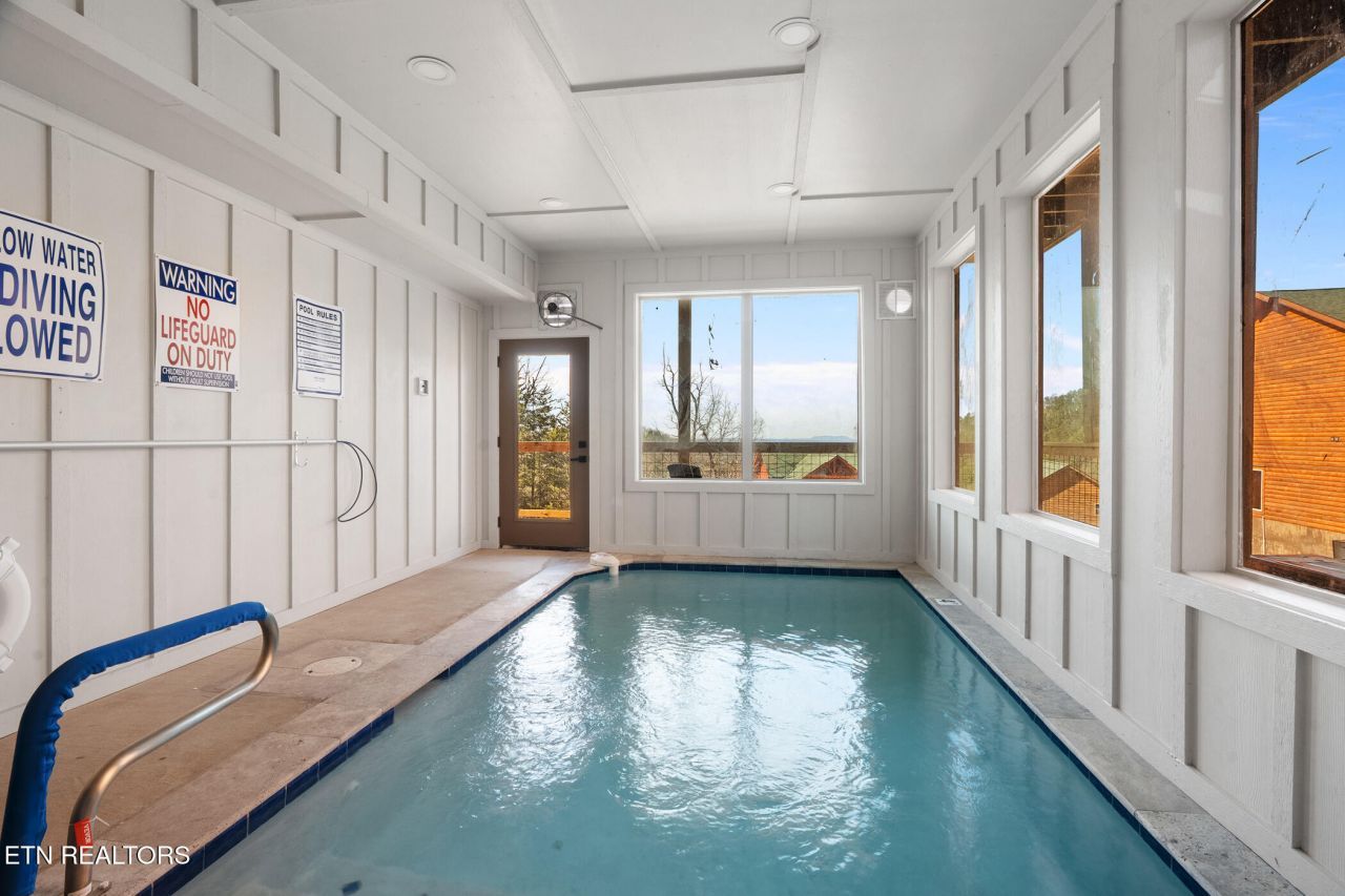 INVESTORS!! ALMOST COMPLETED 3 BEDROOM INDOOR POOL CABIN WITH ARCADE GAMEROOM, MILLION $ MOUNTAIN VIEWS, AND SOLD FULLY FURNISHED AND TURNKEY! HIGH-DEMAND SHORT-TERM RENTAL DESIGNED WITH THE FEATURES, LAYOUT, AND AMENITIES THAT DRIVE BOOKINGS IN THE SMOKY MOUNTAINS. This multi-level property with multiple levels of decking with bubbling hot tub and outdoor seating has been carefully designed to support short-term rental performance by maximizing sleeping flexibility, guest comfort, and entertainment value. Spacious and open floorplan with soaring vaulted ceilings in the living room with fireplace, and eat luxury fully equipped kitchen. The main level offers a private primary bedroom suite with an additional half bath, creating an ideal setup for owners or guests seeking convenience and separation from group living areas. The upper level provides two additional bedrooms, a full bathroom, and a loft gameroom offering adaptable space for families and larger groups to gather, relax, or sleep comfortably.The lower level is intentionally positioned as a destination within the home, anchored by a private in-ground pool with a dedicated full bathroom, an amenity that significantly enhances year-round guest appeal. This level also includes an additional bedroom large enough to accommodate double queen bunks further increasing occupancy potential while maintaining functionality. In total, the home offers three bedrooms and three and a half bathrooms, a configuration that supports group bookings while maintaining a smooth and logical flow throughout the property.Luxury vinyl plank flooring throughout provides durability, consistency, and ease of maintenance, while tile showers contribute a clean, modern, upscale aesthetic. The thoughtful separation of sleeping areas, entertainment zones, and common living spaces allows guests to spread out comfortably, supporting longer stays, repeat visits, and strong guest satisfaction.With its flexible floor plan, high-demand amenities, and finishes tailored for STR use, this property aligns with what experienced investors seek in today's Smoky Mountain short-term rental market. A well-balanced combination of layout, pool-level living, and performance-focused design makes this a compelling opportunity. Convenient location only minutes to Pigeon Forge, area attractions, Dollywood, shopping, and dining. Only a short drive to Gatlinburg! This is a must see!