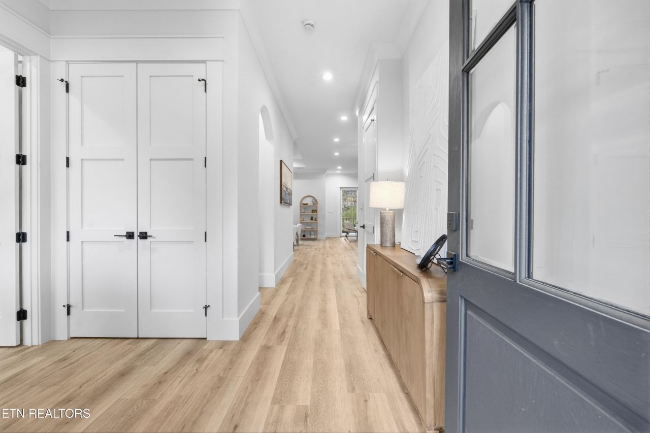 Spacious and thoughtfully designed 3-bedroom + bonus room home with true basement potential, situated in a cul-de-sac and ready for its first-time owners. This home showcases clean, timeless finishes, a functional layout, and excellent flexibility for future expansion. Welcoming foyer with wainscoting and a built-in bench creates a functional drop zone upon entry. Open living room features a tray ceiling, accent wall, gas fireplace framed by custom built-ins, and expansive windows overlooking a wooded backdrop that fill the home with natural light, enhanced by European tilt & turn windows throughout. Chef's kitchen blends style and function with soft-close cabinetry, quartz countertops, a beautifully tiled backsplash, oversized island, LG Studio white appliances, gas range, and elegant lighting. Large primary suite offers a serene retreat with oversized windows, tray ceiling accented by decorative beams, custom wall detailing and sconces, and a spa-inspired bath featuring double vanities, tiled mirror wall, large walk-in shower, drop-in soaking tub, and a spacious custom walk-in closet with built-in shelving and drawers. Wide-plank LVP flooring flows throughout the home. Well-appointed laundry room includes extra cabinetry, utility sink, and washer/dryer connections. Dedicated drop zone by the garage adds everyday convenience. Bonus room provides flexible living space with a closet and additional storage area, ideal for a home office, media room, or guest space. Outdoor living is effortless with a screened deck, composite decking, and a large concrete patio below, perfect for relaxing or entertaining while enjoying the private backyard and common area beyond. Tall crawlspace with a full concrete pad offers exceptional storage and true potential for future basement conversion, with ample height and accessibility, ideal for adding living space, a gym, or recreation area. Quality craftsmanship, flexible living, and room to grow make this an exceptional opportunity in Chatuga Coves. Schedule a showing today. Buyer to pay the one-time Loudon County Impact tax $1.00 per finished sq.