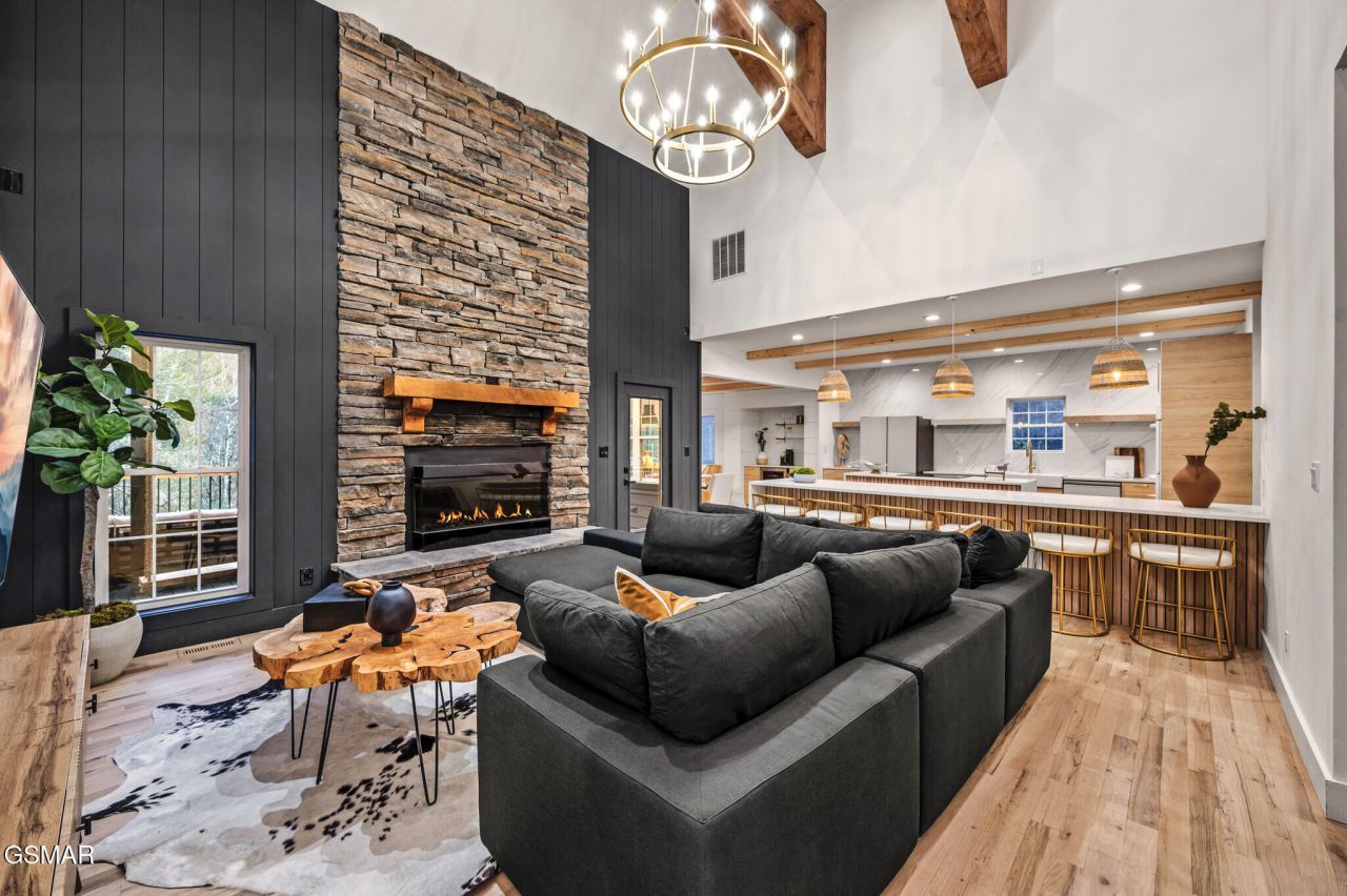 ONCE-IN-A-LIFETIME INVESTMENT OPPORTUNITY! SPRINKLER SYSTEM INSTALLED! This spectacular luxury retreat, known as ''The Experience,'' offers 5 spacious bedrooms, 4 additional bonus rooms, and 6 full bathrooms, totaling over 5,200 sq ft of modern cabin luxury! In 2024, this showstopper grossed over $356,000, making it a high-performing asset and unique gem in the Smokies. (COMES FULLY FURNISHED AND BOOKINGS WILL CONVEY WITH SALE. IF BUYER STAYS WITH CURRENT MANAGEMENT COMPANY LISTINGS WILL CONVEY!)Unlike any other, this modern-style indoor pool cabin features a 558 sq ft heated and cooled private pool room with a color-changing waterfall and theater-style projection screen???an unforgettable experience for guests! With two full theaters, a huge arcade room, and amenities like black light mini golf, basketball court, sand volleyball, and more, it's a rental powerhouse.Resting on a 1.52-acre private lot with a stocked pond, fishing dock, and paddle boat, this cabin offers a rare mix of high-end entertainment and natural serenity. Relax in the 8-person hot tub or gather around the modern outdoor fire pit at your leisure.From WWI-era barnwood accent walls to marble showers, the finishes are top-tier???offering the feel of a boutique resort in a totally private setting. Located just 15-20 minutes from Gatlinburg, this property is the ultimate blend of luxury, fun, and profit potential. Don't miss this truly extraordinary opportunity!