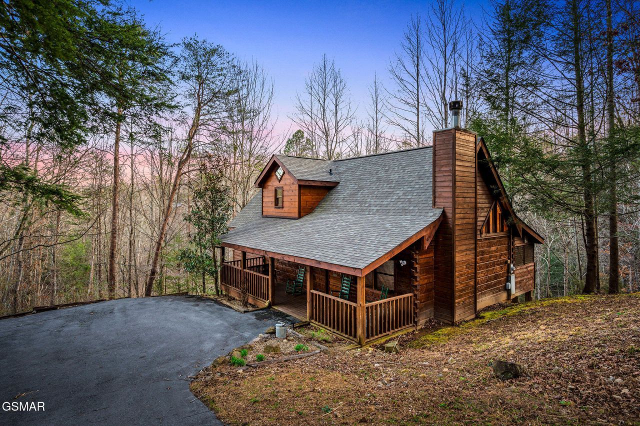 **CREATIVE FINANCING** - 3.75% INTEREST RATE. This is the Smoky Mountain escape you've been waiting for! Nestled in a peaceful setting just minutes from all the attractions of Pigeon Forge, this beautifully maintained 2-bedroom, 2-bath log cabin blends rustic charm with comfort and privacy.Step inside to discover a updated warm and inviting interior featuring vaulted ceilings, two fireplaces, and an open layout full of natural wood tones and cozy touches. Each of the two king-sized master suites offers its own full bathroom for ultimate convenience.Upstairs, the spacious master suite features a gas fireplace and access to a private screened-in deck complete with a hammock to make a great personal retreat after a day of adventure. On the main level, the second master boasts an in-room whirlpool tub and direct access to another screened porch featuring a hot tub and pool table, perfect for relaxing or entertaining.Recent updates offer peace of mind, including a new roof and full exterior stain (2021) and a whole-house water filtration system (2024). With multiple covered porches and quiet surroundings, this cabin delivers that hard-to-find combination of privacy, character, and location.