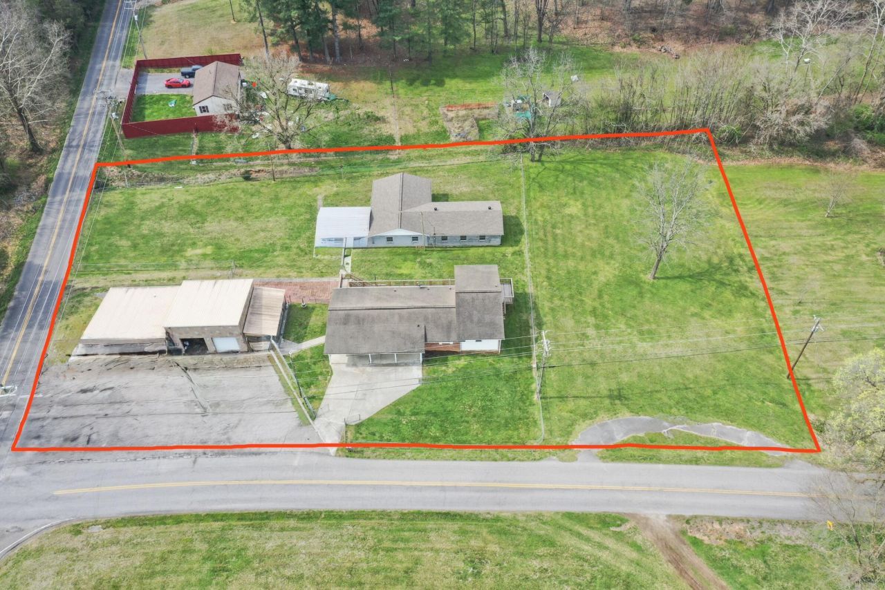 This is 3 Properties in One! It is Zoned R-1 and C-1. It is nestled on the corner of Old Kentucky Rd in the Copper Ridge Community. It is only a minute or two from HWY. 25-E. Less than 2 minutes to Cherokee Lake and Park. There is a home, an extra lot, an additional Garage/Warehouse and a Commercial Building. Let's start with the home. It is fenced and has 1,607 square feet. The kitchen is equipped with plenty of Maple, Wood Cabinetry, a ''Built in'' Oven, an Over the Range Microwave and a Pantry. It has durable, LVT Flooring throughout, Dark Countertops, a deep Farm House Style Sink, Pine Wood Walls and Wood Ceilings are also throughout much of the home. It has 3 bedrooms, 2 full baths, a Beautiful Sunroom, a carport and a full, unfinished basement. It also has a covered front porch, an attached carport and 2 large, newly built decks for overlooking the property or entertaining. Let's move to the 2001 sq. ft. separate Garage/Warehouse. It is on a concrete slab with a block exterior. It has electricity, a shingled roof and gutters, 4 rollup garage doors and an attached 20X40 Shed/Carport. And then we have the additional lot. It is nearly a half of an acre. It fronts the main road and lays perfectly by the fence of the main house. This lot has unlimited possibilities or it is beautiful enough to just leave it like it is. Lastly but not least, there is an Iconic, Commercial Building on the corner that once served as a Service Station on Old Kentucky Road. It has old gasoline tanks in the ground and an in ground hydraulic lift. Neither have been inspected in many years so that would be the buyers responsibility to address. This building has a tenant and is currently leased as a Car Lot. That lease is negotiable for the new buyers, if you wish for them to remain as tenants. This Commercial Zoned Building has 1,680 sq. ft. with an office, a garage with 2 roll up doors, a restroom and a basement. Due to this being an Estate Sale, this property comes ''As Is''.