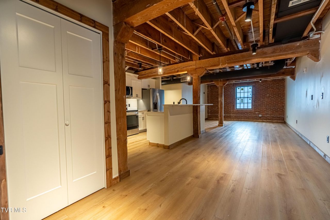 NEW RENOVATION! This is your chance to purchase unit #200 on the second floor! This is a beautifully renovated 2 bed/2bath space in an historically significant building in Downtown Kingsport, TN! Originally, this Kingsport Landmark was the Kingsport Grocery Company which served the community as a wholesale grocer. In more recent years, the building was used as various restaurants and event spaces. But now, this beautiful building has been divided into condo units as well as a restaurant space on the ground floor. This well appointed condo is approximately 1350 square feet with two bedrooms and two full bathrooms. Located on the 2nd floor with elevator access as well as traditional stairwell, you can enjoy all the amenities of a single family home right in Downtown Kingsport. This unit is very nicely appointed with reinforced noise dampening floors and windows. EV chargers, interior bike storage and individual storage for each unit are coming soon! When you walk into the foyer, you are greeted with a variety of textures and neutral colors including original wood beams, original brick walls, luxury vinyl floors and traditional drywall. The industrial finished utilities also add to the historic charm. The condo is appointed with stainless steel appliances and quartz countertops throughout. Two parking spaces in a gated parking lot are allotted to this unit. Now taking reservations for showings at the beginning of the year. A proof of funds letter or pre-qualification letter must be presented before a tour will be confirmed. All information is deemed reliable. Buyer and Buyers Agents shall confirm all information. HOA bylaws and fees will be established once a majority of units have been sold.