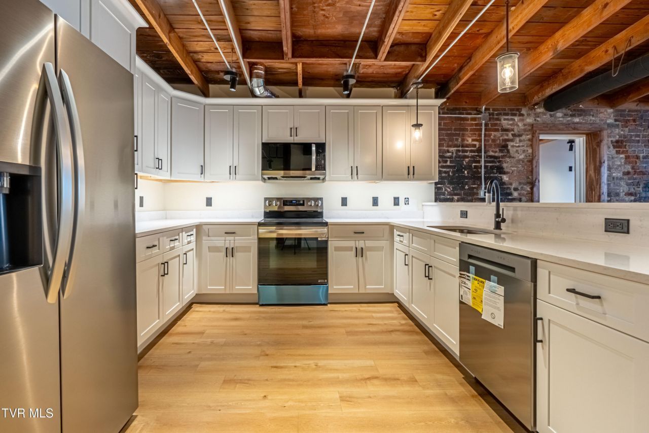 NEW RENOVATION! This is your chance to purchase unit #700 on the third floor! This is a beautifully renovated 2 bed/2bath space in an historically significant building in Downtown Kingsport, TN! Originally, this Kingsport Landmark was the Kingsport Grocery Company which served the community as a wholesale grocer. In more recent years, the building was used as various restaurants and event spaces. But now, this beautiful building has been divided into condo units as well as a restaurant space on the ground floor. This well appointed condo is approximately 1300 square feet with two bedrooms and two full bathrooms. Located on the 3rd floor with elevator access as well as traditional stairwell, you can enjoy all the amenities of a single family home right in Downtown Kingsport. This unit is very nicely appointed with reinforced noise dampening floors and windows. EV chargers, interior bike storage and individual storage for each unit are coming soon! When you walk into the foyer, you are greeted with a variety of textures and neutral colors including original wood beams, original brick walls, luxury vinyl floors and traditional drywall. The industrial finished utilities also add to the historic charm. The condo is appointed with stainless steel appliances and quartz countertops throughout. Two parking spaces in a gated parking lot are allotted to this unit. Now taking reservations for showings at the beginning of the year. A proof of funds letter or pre-qualification letter must be presented before a tour will be confirmed. All information is deemed reliable. Buyer and Buyers Agents shall confirm all information. HOA bylaws and fees will be established once a majority of units have been sold.